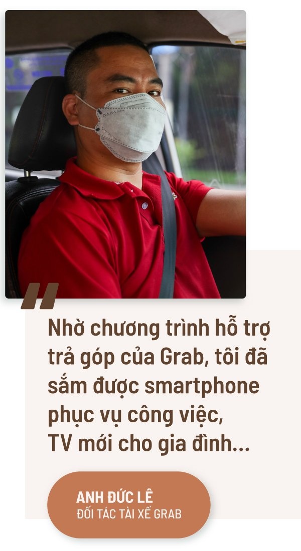 Các chương trình hỗ trợ tài chính như vay tín chấp, mua điện thoại trước trả sau… như chiếc “phao cứu sinh” giúp anh Lê giữa thời dịch. “Grab rất quan tâm đến đời sống của anh em tài xế. Nhờ chương trình hỗ trợ trả góp, tôi đã sắm được smartphone phục vụ công việc, TV mới cho gia đình… Đặc biệt, hãng đã đứng ra làm cầu nối để hỗ trợ tôi vay tín chấp từ ngân hàng VietinBank. Với số tiền đó, tôi có thể cân đối chi tiêu, sau đó trả góp từng tháng mà không phải căng đầu”, anh Lê chia sẻ.