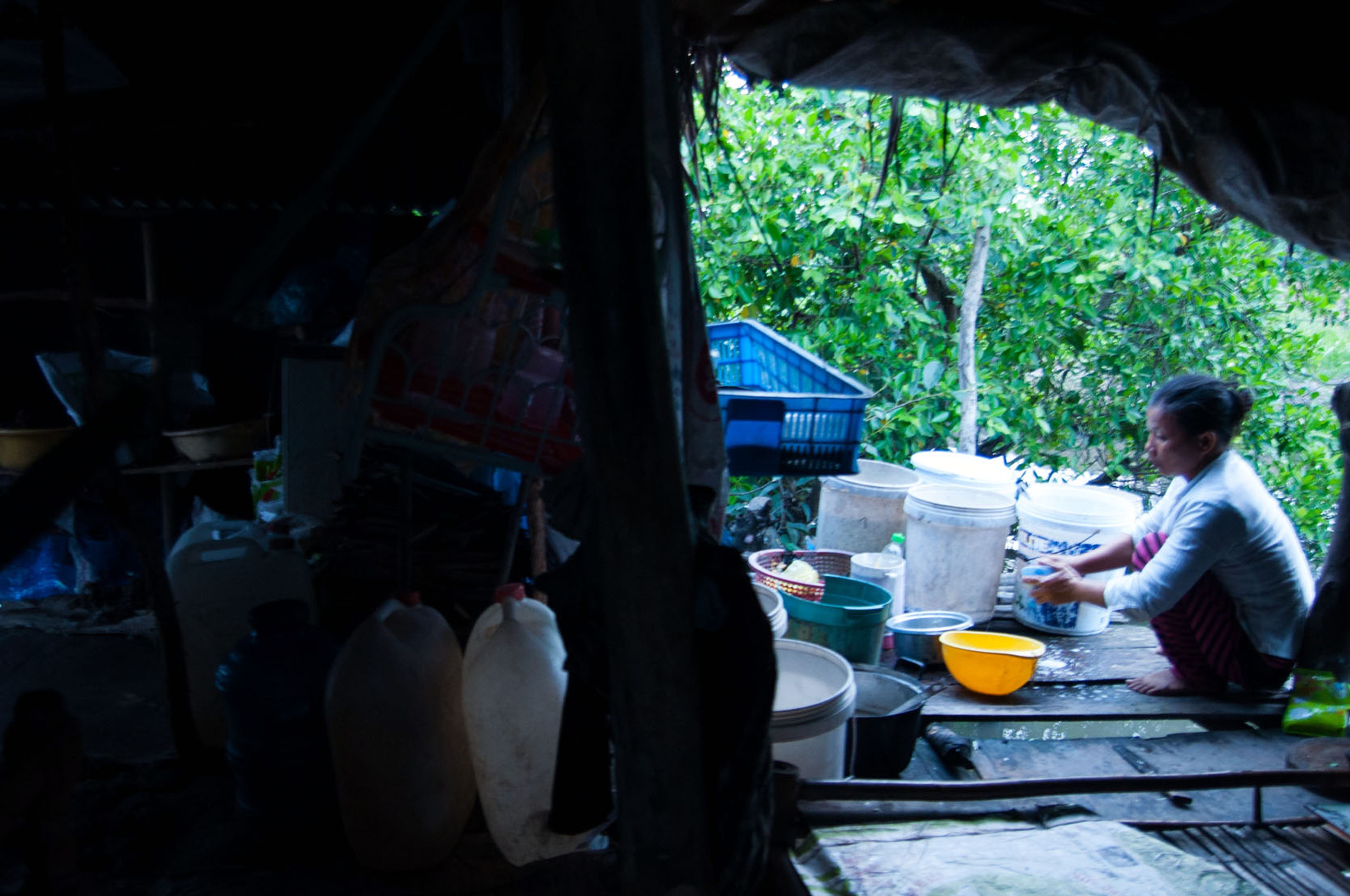 Sau bữa ăn chiều qua loa, chồng chị Đẹt lại đi bốc vác hàng thuê cho một chủ thuyền buôn. Còn chị tranh thủ rửa chén bát. Ngoài việc nấu ăn bằng nước sạch xin của một hộ dân, mọi sinh hoạt khác chị đều phải dùng nước ao.