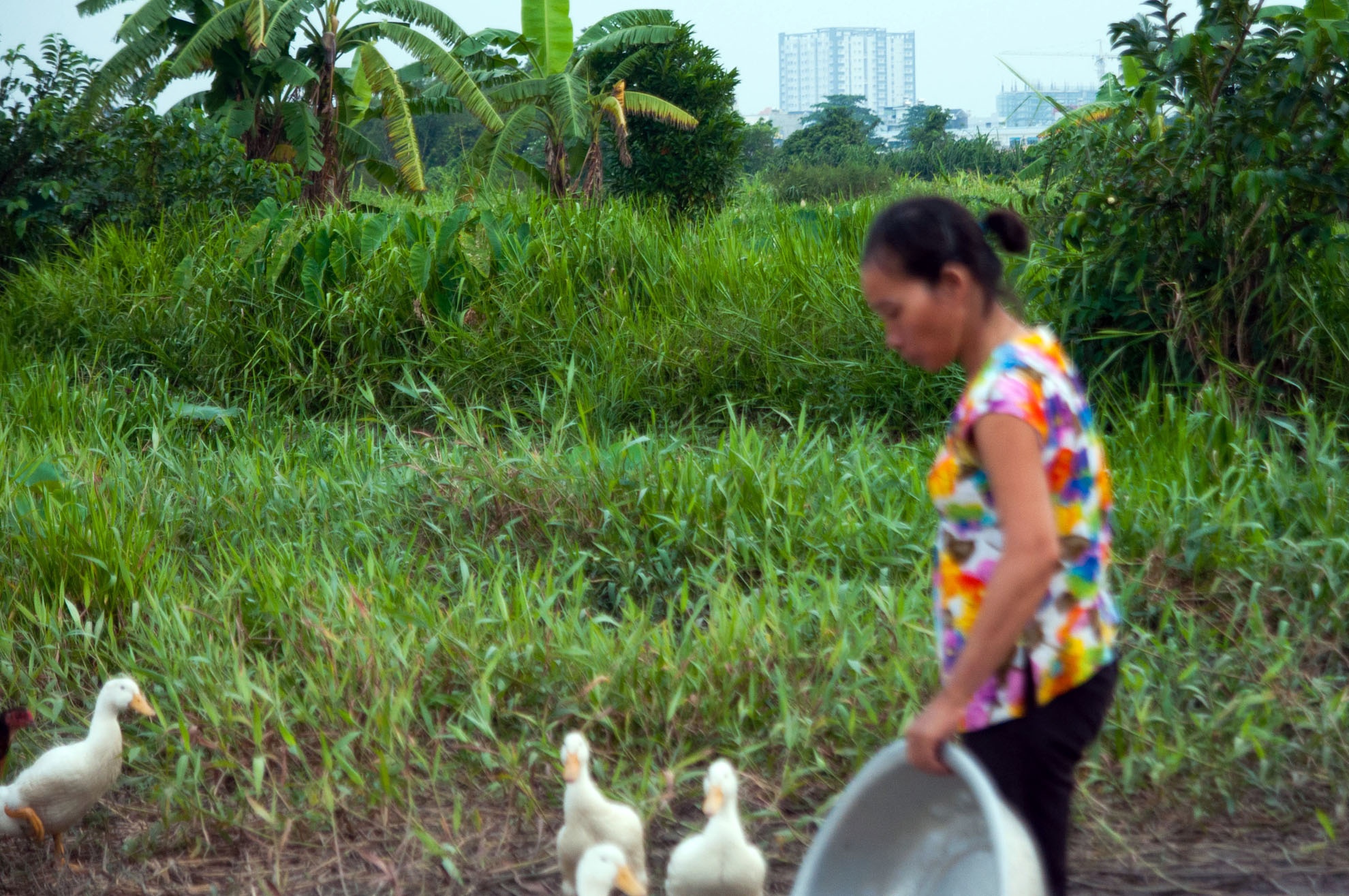 | Nằm sát nhà chị Đẹt là hộ gia đình chị Bùi Thị Cẩm Nang (42 tuổi, quê Bạc Liêu). Vợ chồng chị Nang mới lên Sài Gòn và sống ở đây được hơn một năm. Anh chị phải gửi hai con cho bà ngoại ở quê trông giúp. Chồng đi làm thuê mướn, ở nhà chị mua bầy vịt về chăm bán lấy lời. "Tôi bị đau cột sống nên không thể bốc vác nặng", chị tiết lộ.