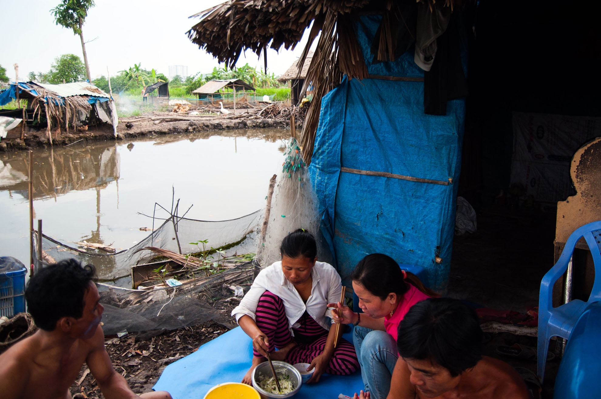 | "Xóm không điện nước" thuộc ấp 4 tổ 25, xã Đông Thạnh, huyện Hóc Môn (TP HCM). Đây là nơi tập trung các gia đình từ miền Tây lên thành phố tìm công ăn việc làm. Không thể xin việc ở các công ty, họ dạt về khu vực này thuê đất dựng tạm lều để ở, chờ ai thuê gì làm nấy từ bốc vác, cuốc đất ruộng, nuôi vịt.... |