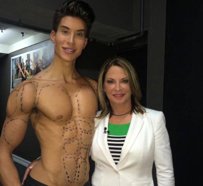 Mọi cm trên cơ thể anh đều là cấy ghép. Toàn thân anh trông như một con búp bê bằng nhựa. Khuôn mặt được "chạm trổ" tới mức cười nói méo xệch.