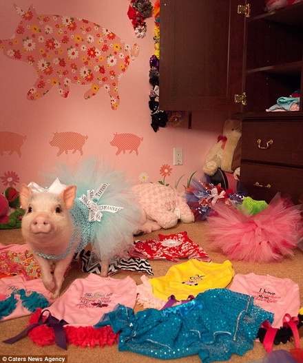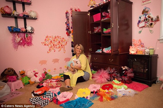 Người chủ của Penelopi là bà Mindi Reinbolt, 37 tuổi và sống ở Uniontown, Ohio, Mỹ. Reinbolt yêu con lợn 14 tháng tuổi của mình đến mức xây cho nó một phòng ngủ riêng với gam màu hồng lấp lánh, có một tủ quần áo riêng lúc nào cũng đầy quần áo. |