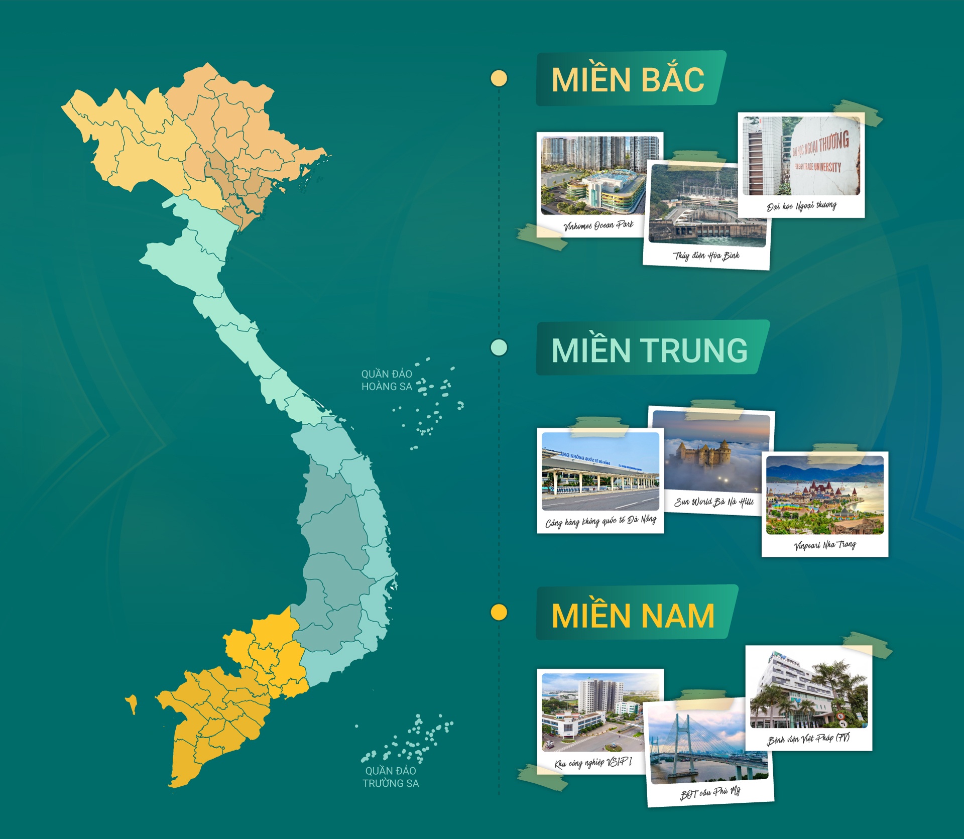 Bên cạnh hệ thống chi nhánh và phòng giao dịch quy mô, dấu ấn của BIDV còn thể hiện ở số lượng công trình, dự án nổi tiếng được cấp vốn tài trợ, trải dài trên toàn quốc. Rất nhiều trong số đó là những cái tên quen thuộc, xuất hiện trên đường chúng ta đi học, đi làm hàng ngày như Bảo tàng Hồ Chí Minh, Đường tàu Thống nhất Bắc - Nam, Cầu Thăng Long, Đại học Ngoại thương, Bệnh viện Nhi Trung ương, Vinhomes Ocean Park, Công viên Hạ Long, Sun World Bà Nà Hills, Vinpearl Nha Trang…