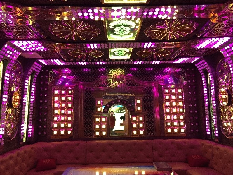| Không gian ánh sáng và âm thanh ấn tượng tại phòng hát của Karaoke Gia Đình E. |