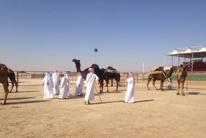 Khamees Mohammad al Sharee, một người thường có lạc đà tham dự cuộc thi này cho biết: “Nhà chức trách lập ra một ủy ban đặc biệt để đánh giá cuộc thi. Họ cho lạc đà tập hợp vào một khu vực để chấm điểm”. Ảnh: Sky News.