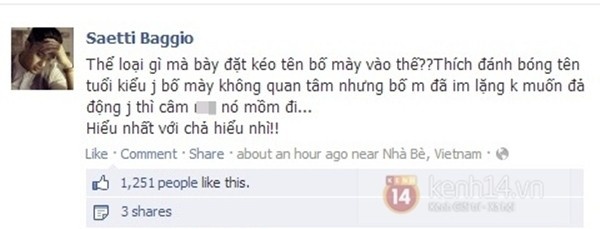 Tuy nhiên, ngay khi vừa công khai những bức ảnh thân mật với Andrea cùng một bài phỏng vấn với câu nói "Baggio là người hiểu tôi nhất", sự việc càng thêm ồn ào khi Baggio bày tỏ thái độ tức giận, thậm chí buông những câu chửi thề với Yanbi trên Facebook: "Thể loại gì mà bày đặt kéo tên bố mày vào thế?? Thích đánh bóng tên tuổi kiểu gì bố mày không quan tâm nhưng bố mày đã im lặng không muốn đả động gì thì câm mồm đi... Hiểu nhất với chả hiểu nhì!". Ngay lập tức nhiều người liên tưởng đến chuyện tình yêu đang trục trặc của Baggio. Một số comment của fan đã dẫn link bằng chứng của câu status này.