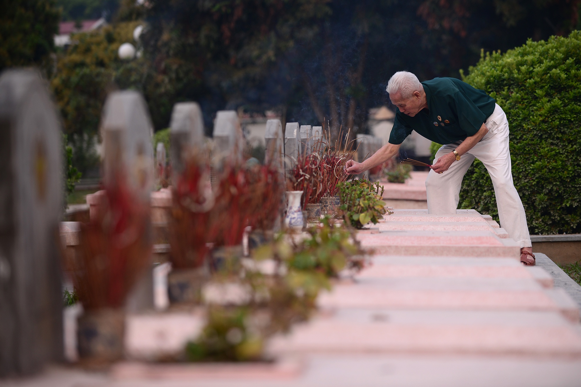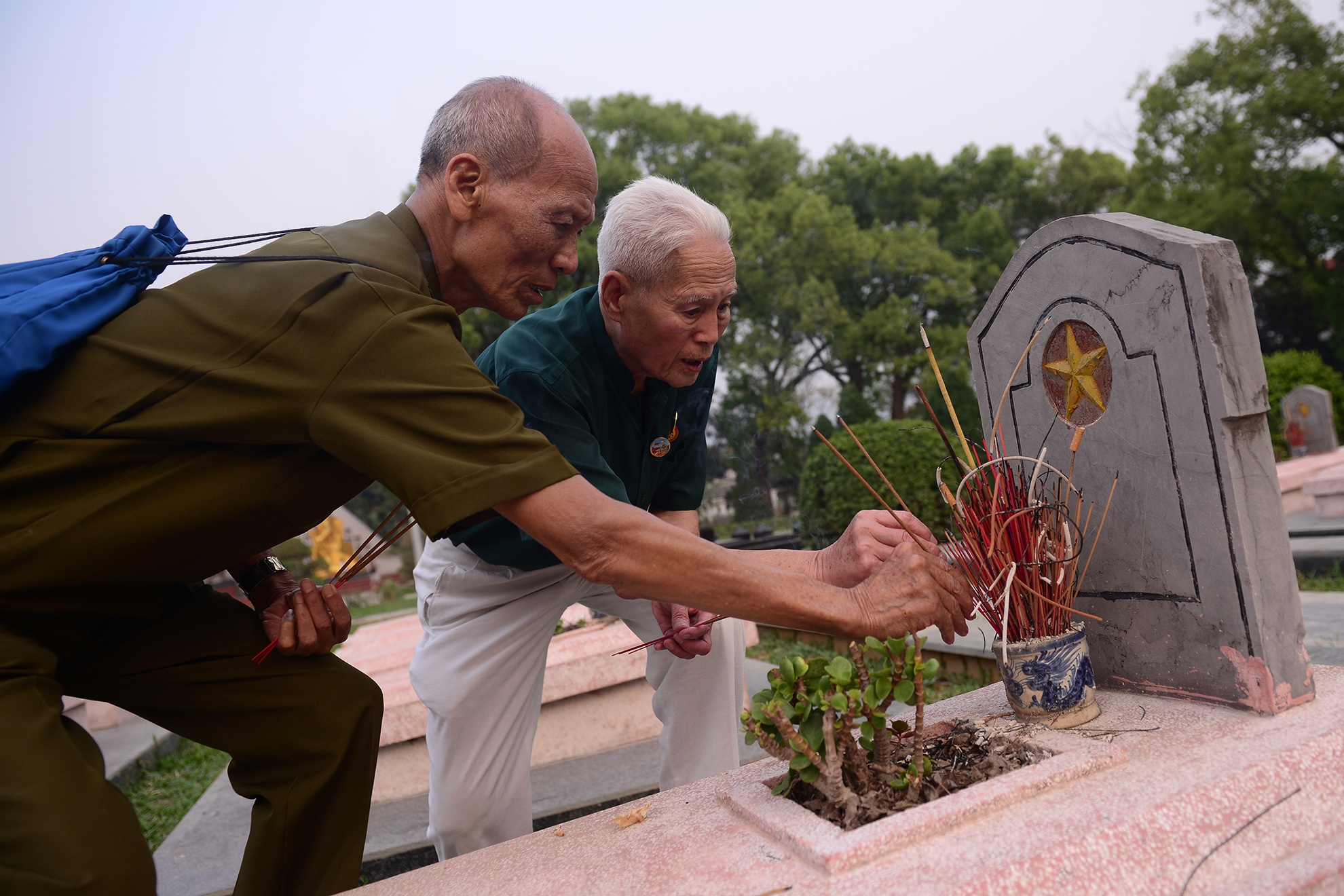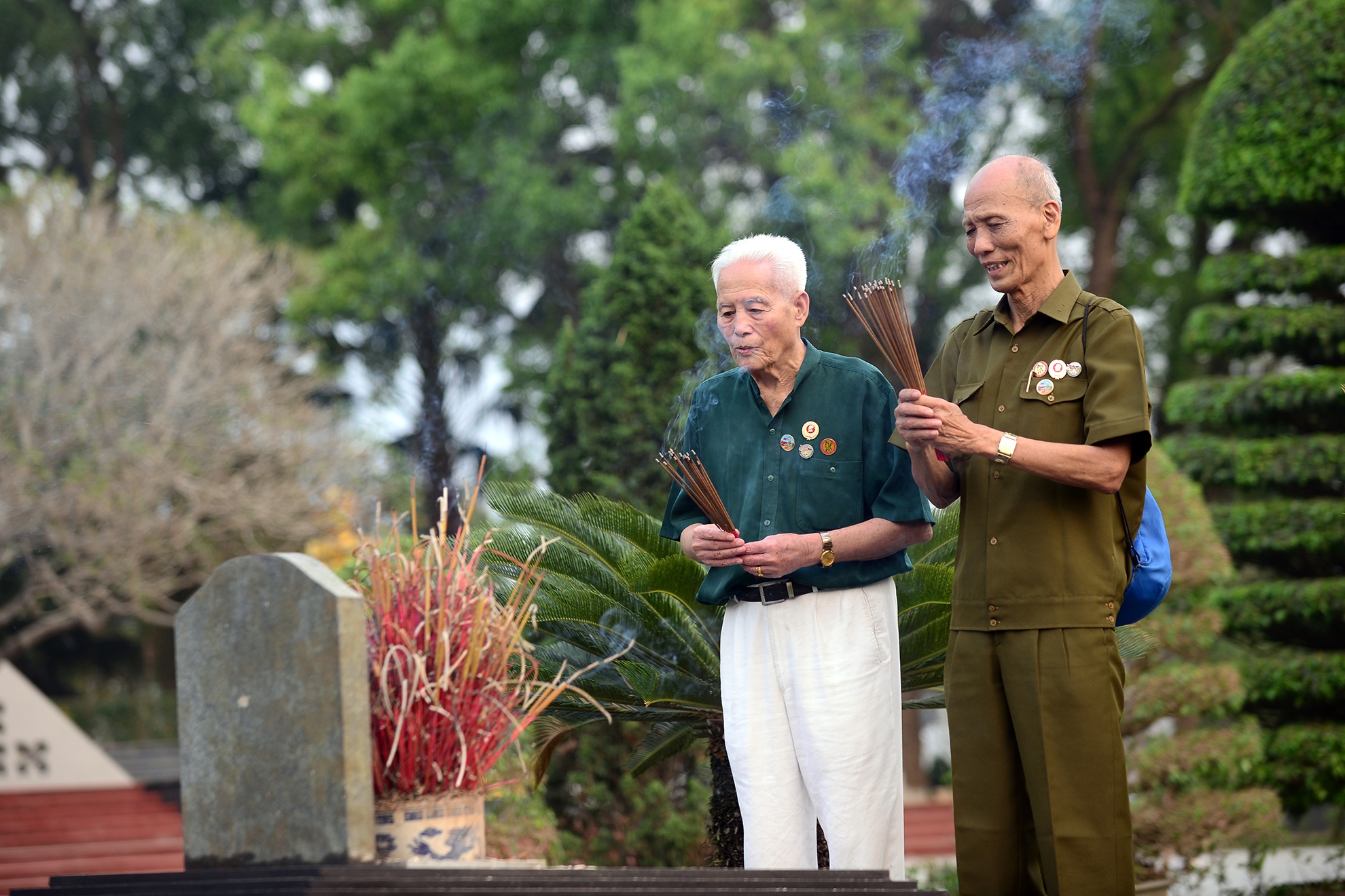 | Mỗi nén nhang trước mộ các liệt sĩ vô danh như một sự tri ân, lời hỏi thăm và chia sẻ với các đồng chí đồng đội của hai ông. |