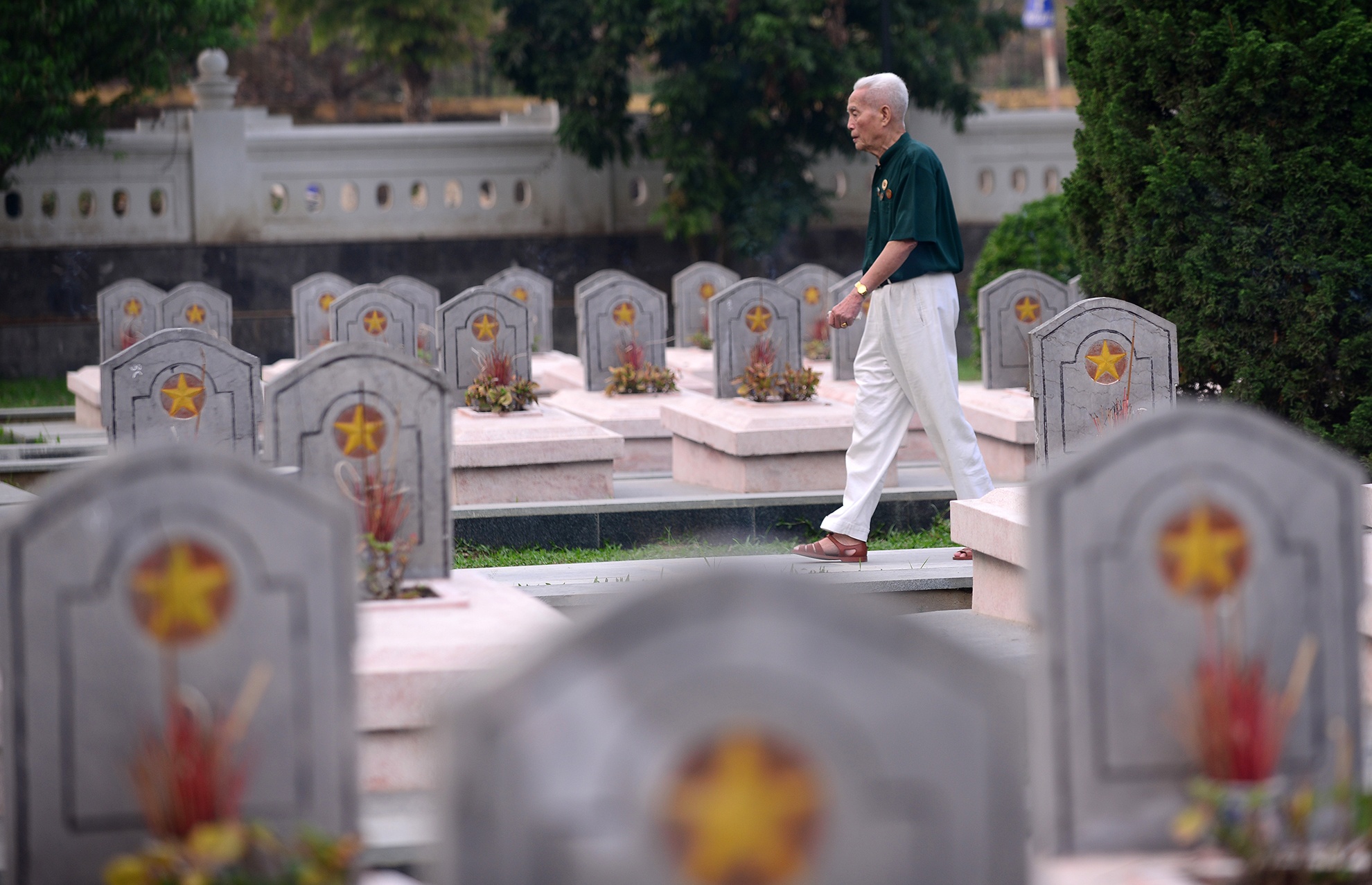 | Người chiến sĩ Điện Biên đã không cầm được nước mắt khi đứng giữa các đồng đội vô vẫn còn nằm lại nơi đây. Các ông biết chắc rằng trong gần 1000 ngôi mộ có đồng đội cùng đơn vị nhưng không biết nằm nơi đâu nữa, rất nhiều đồng chí gia đình chưa nhận được hài cốt, nhiều ngôi mộ vô danh. |