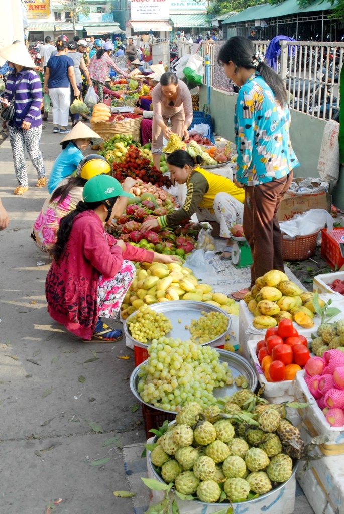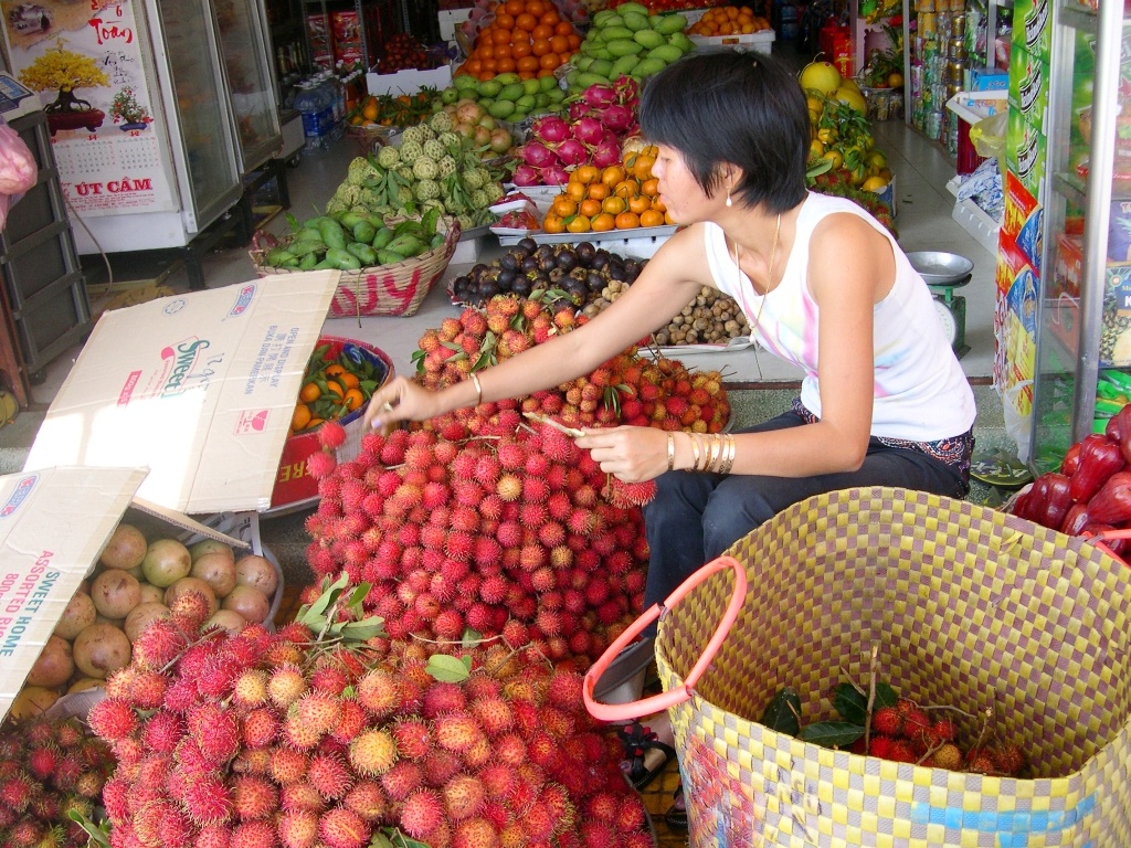 Tại cửa khẩu Tịnh Biên (An Giang), mỗi ngày có hàng trăm tấn trái cây các loại được xuất khẩu qua Campuchia, mặt hàng chủ lực là chôm chôm, cóc, ổi. Bà Trần Thị Kim Cúc, chủ vựa trái cây lớn nhất ở chợ cửa khẩu Tịnh Biên, cho biết, cách đây một tháng, giá trái cây trong nước giảm nên mỗi ngày vựa bà mua xuất qua Campuchia từ 40-50 tấn. Nhưng hiện nay giá tăng lên, hàng không còn nhiều nên số lượng xuất bán qua Campuchia mỗi ngày cũng giảm còn 1/3 so với lúc thu hoạch rộ.