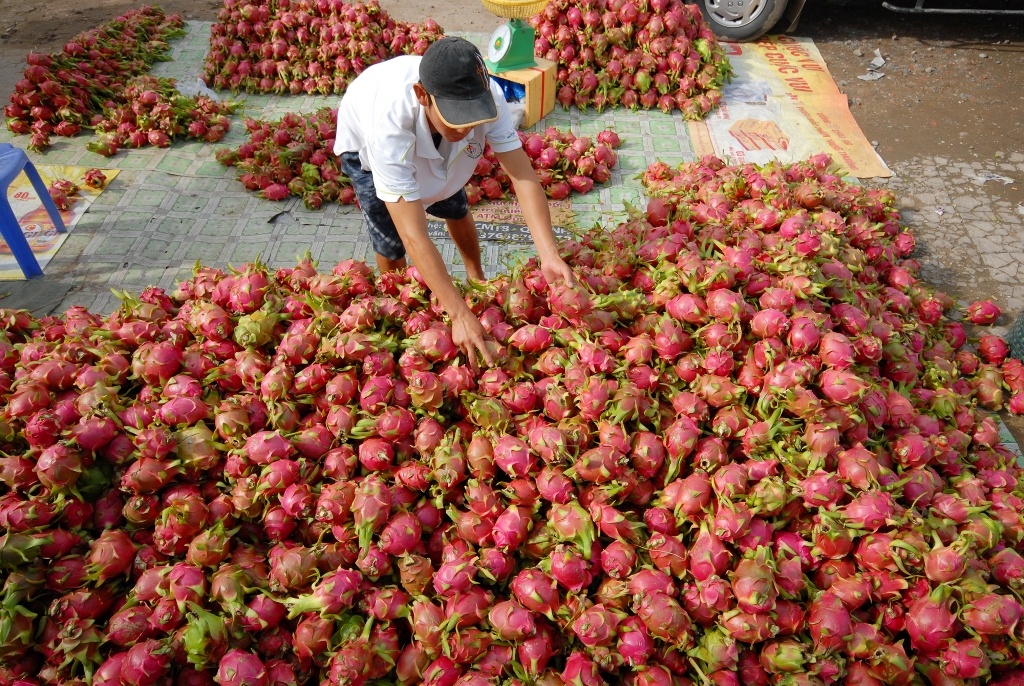 Trái cây xuất khẩu sang Campuchia cũng giảm chỉ còn bằng 1/3 so với chính vụ. Ảnh Ngọc Trinh. |