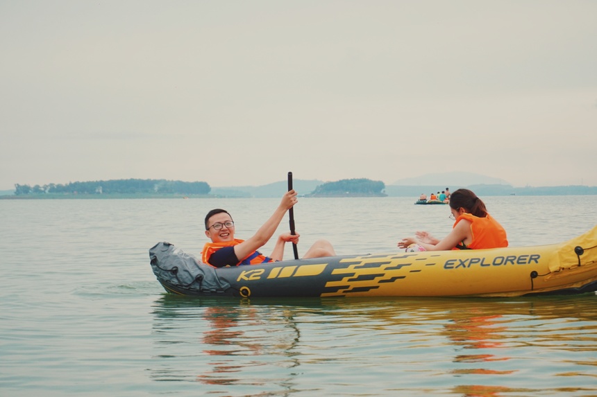| Nếu đi theo nhóm đông, bạn có thể lựa chọn hoạt động chèo thuyền nổi trên hồ Trị An. Trong hồ cũng có khu vực an toàn để du khách bơi lội. |