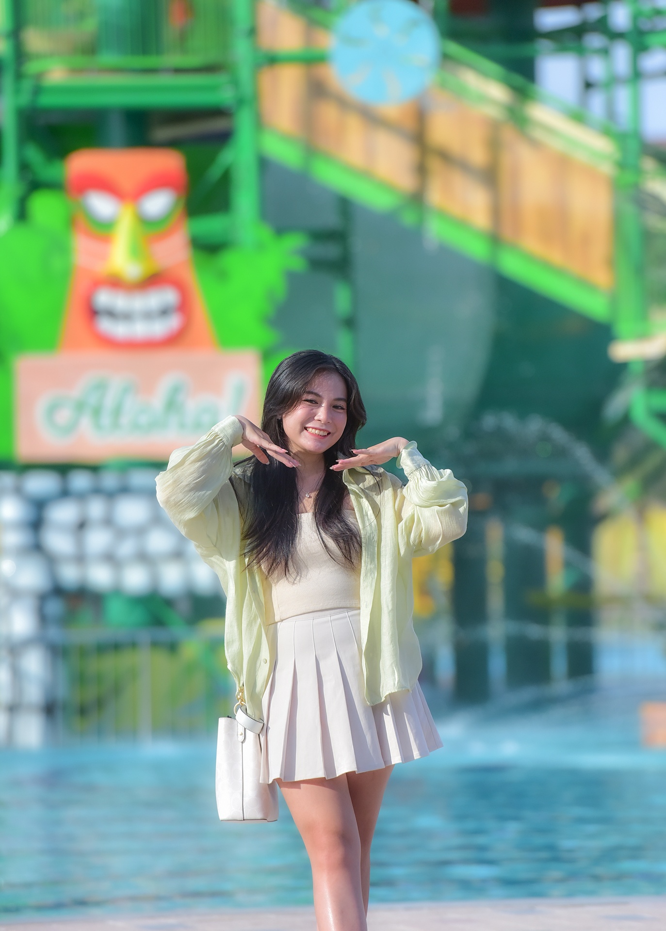 | Ngày đầu tiên của chuyến "staycation", tôi và nhóm bạn dành trọn buổi chiều đắm mình trong đại chiến thế giới nước phiên bản Giáng sinh miền nhiệt đới. Trong nền nhạc DJ sôi động, các vũ công trong trang phục Hawaii cùng chiếc mũ đỏ rực rỡ mang không khí Noel đặc trưng đến với mọi du khách. |