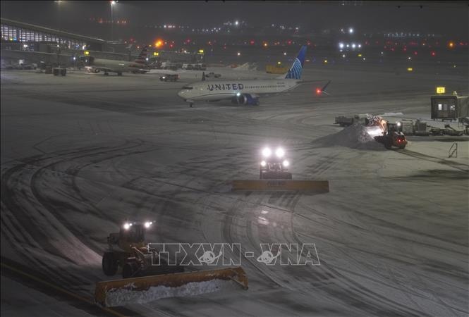 Xe dọn tuyết hoạt động tại sân bay LaGuardia ở New York, Mỹ khi bão tuyết hoành hành, ngày 26/12/2025. Ảnh: THX/TTXVN |