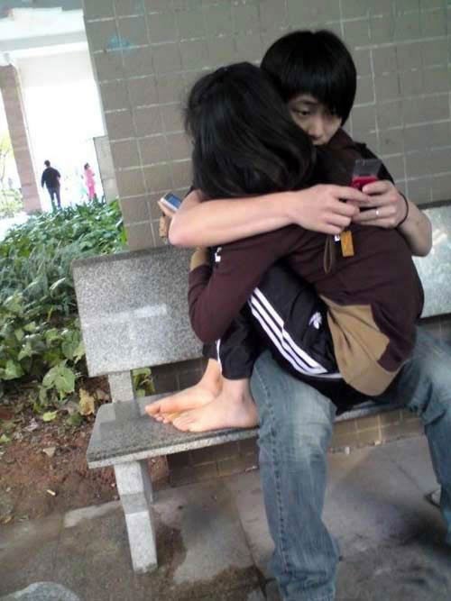 | Ôm kiểu nghiêng nghiêng mới "ngầu". |