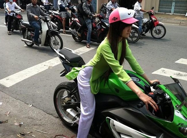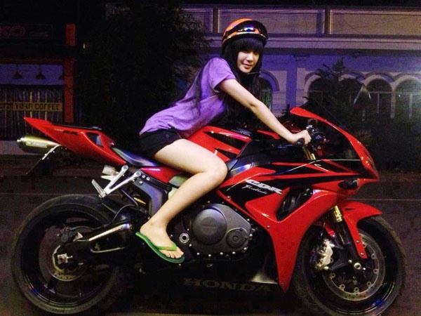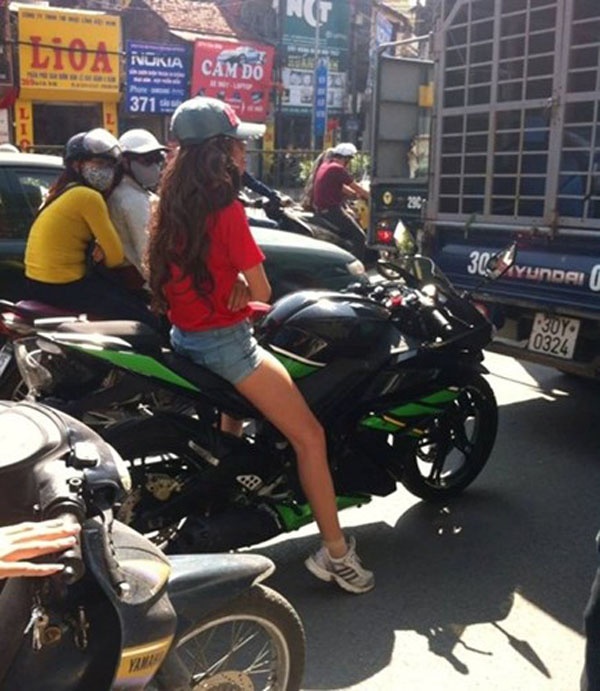 | Hầu hết các cô gái cưỡi mô tô khủng đều sở hữu thân hình nóng bỏng, lái những siêu mô tô như Ducati Monster 795, Pheonix 175 , CBR 1000, FZ6 ...mà bất kì đấng mày râu nào cũng mơ ước sở hữu. Ngay lập tức, thiếu nữ trở thành tâm điểm của sự chú ý. Nhiều người nhanh tay chụp lại và đăng tải hình ảnh lên các diễn đàn yêu xe với chú thích thú vị như "Ai muốn có gấu như thế này không?" , "Một em gái lái mô tô quá cá tính" khiến cư dân mạng thích thú, bàn tán sôi nổi. |