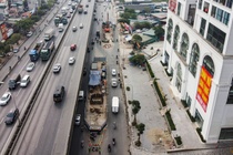 Hồi tháng 8/2022, hai cuộn thép nặng hàng chục tấn cũng rơi xuống đường vành đai 3 trên cao đoạn qua quận Nam Từ Liêm, Hà Nội khiến mặt cầu cạn hình thành vết lõm sâu tới gần 20 cm.
