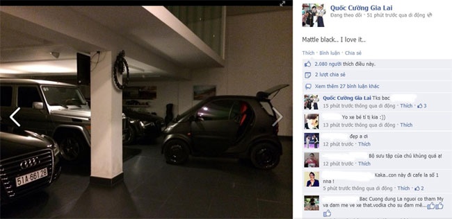 | Cường "đô-la" khoe ảnh chiếc Smart ForTwo màu đen mờ trên Facebook. |