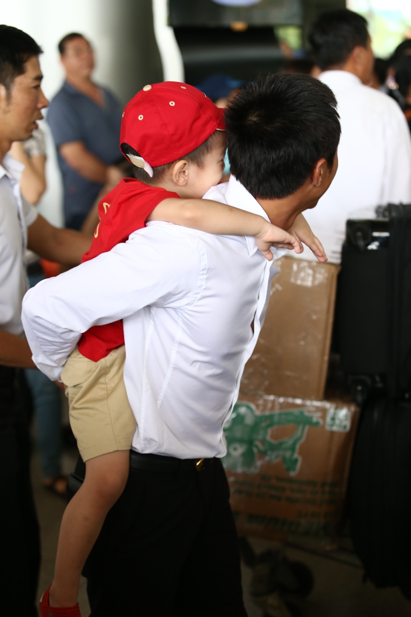 Cường Đôla giúp vợ xách hành lý trong khi nữ ca sĩ cưng nựng cậu nhóc. Hà Hồ từng tâm sự, trong gia đình, cô luôn phải đóng vai ác vì Cường Đôla không bao giờ nỡ mắng con chứ đừng nói là đánh hay phạt bé Subeo.