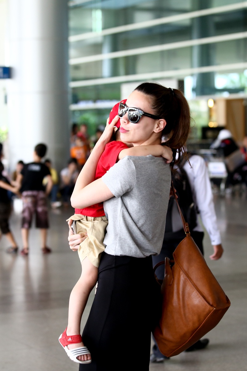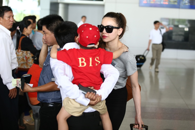 | Hình ảnh thân thiết của hai mẹ con Hồ Ngọc Hà giữa sân bay đông đúc người qua lại. Nữ ca sĩ cho biết cô không thích khoe ảnh con vì đã quá hiểu việc bị chú ý là như thế nào. Thế nên đã không ít lần cô và ông xã cãi nhau bởi anh hay khoe ảnh con trên trang cá nhân. |