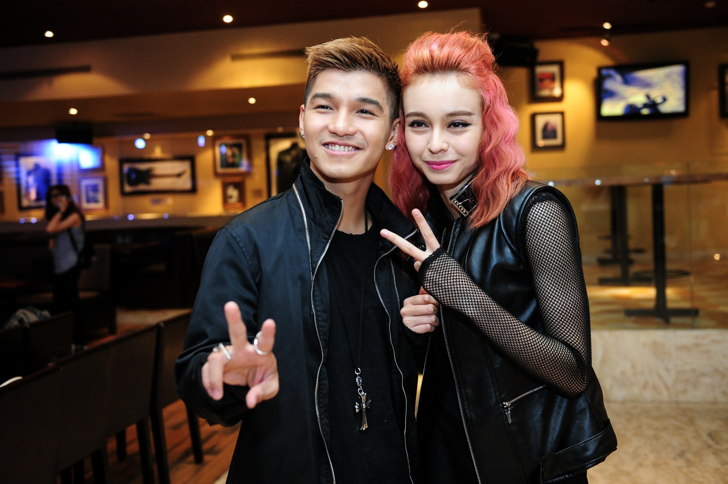 | Cặp đôi Cường Seven - MLee rủ nhau mặc trang phục "ton sur ton" trong lần đầu cùng gặp fan. Cả hai trung thành với phong cách năng động, cá tính, phù hợp hình tượng họ theo đuổi. |