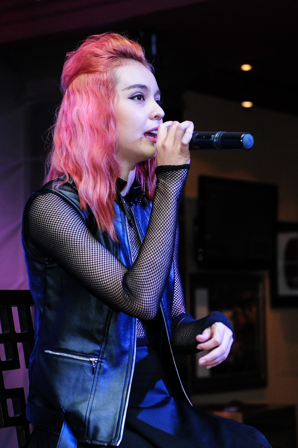 | Bạn gái Cường Seven mạnh dạn lên mở đầu buổi tiệc bằng màn đọc rap ấn tượng. MLee còn thể hiện những ca khúc như I Can Do, I Like You... trên sân khấu. |