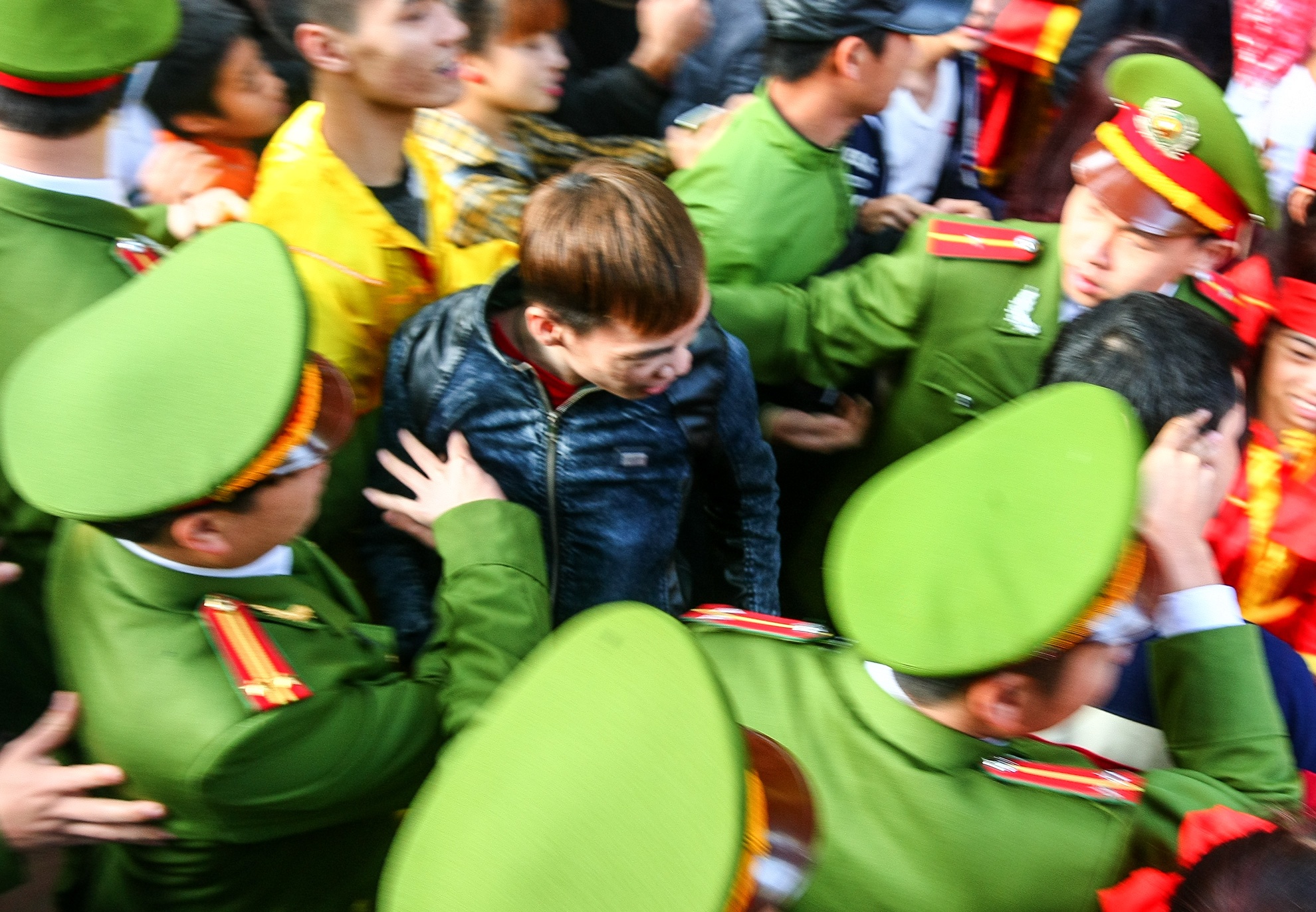 Có chiến sĩ công an đã bị ngã giữa dòng người chen lấn xô đẩy.