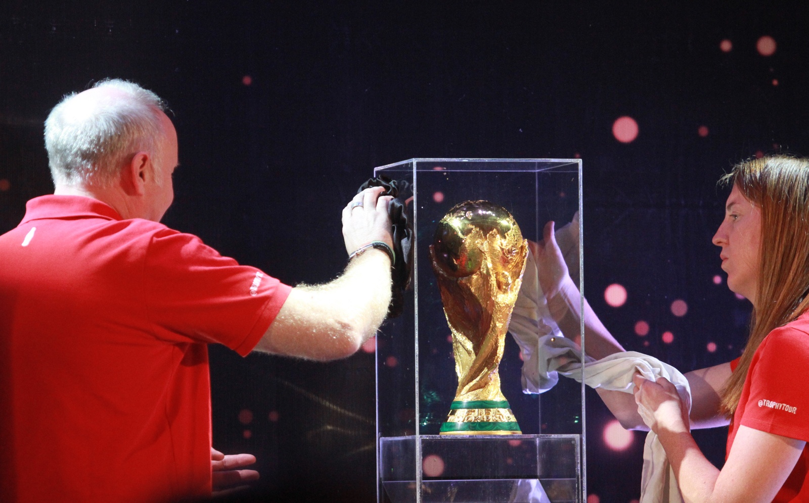 Chiếc Cup vàng FIFA World Cup sẽ được trưng bày tại Cung thể thao Quần ngựa từ 9h sáng đến 5h chiều ngày 01/01/2014. Khán giả đến tham dự ngày hội này ngoài việc được tận tay sờ vào danh hiệu đúc bằng 6,175 kg vàng này còn nhận nhiều phần quà hấp dẫn từ BTC.