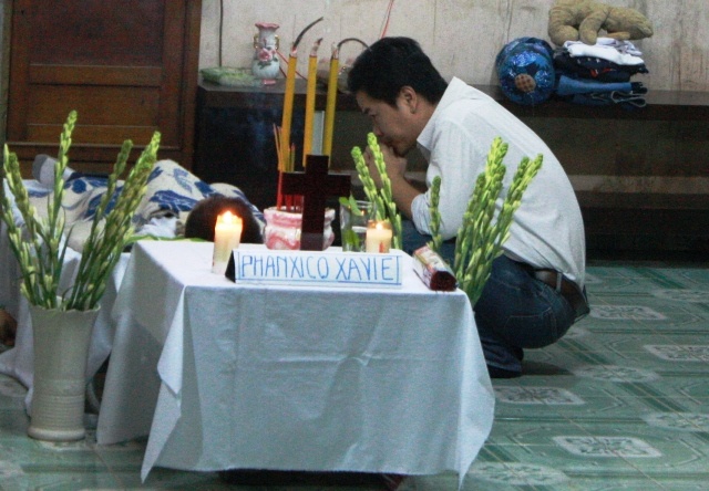 | Người thân quặn lòng bên thi thể của Đạt. |