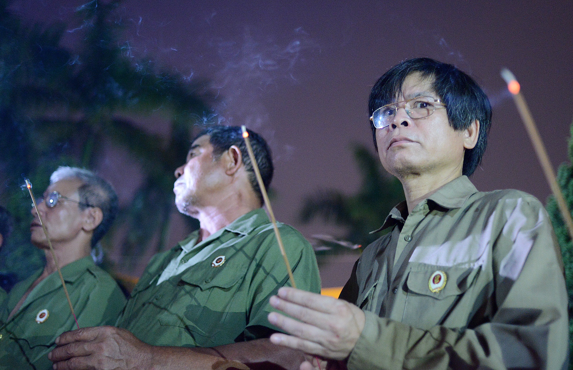 | Tối 19/7, hàng trăm thanh niên, phật tử cùng các cựu chiến binh thuộc Sư đoàn 356 tổ chức làm lễ cầu siêu, thắp hương tưởng nhớ các anh hùng liệt sĩ hy sinh vì độc lập của Tổ quốc, tại Nghĩa trang liệt sĩ Nhổn (Hà Nội). |
