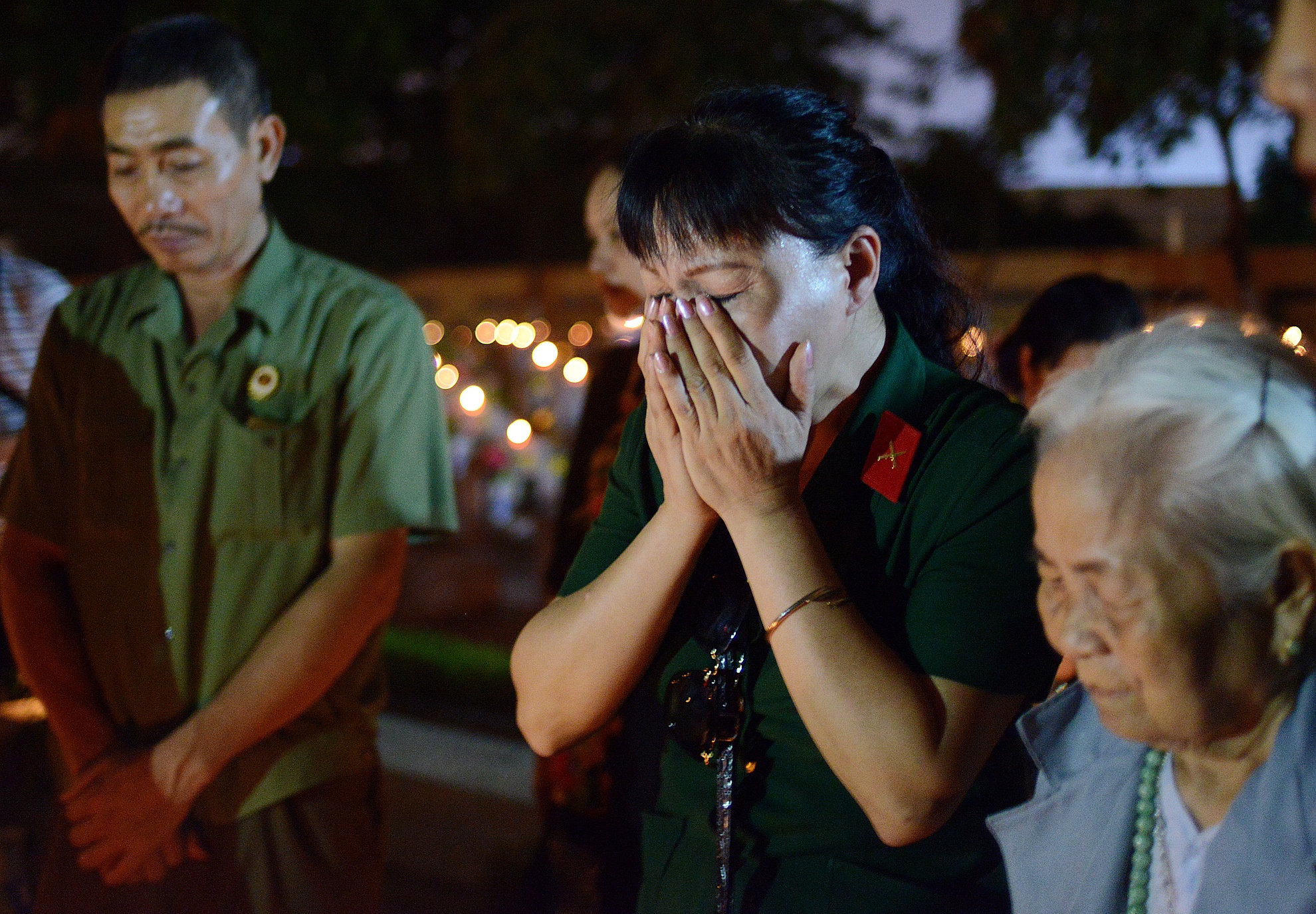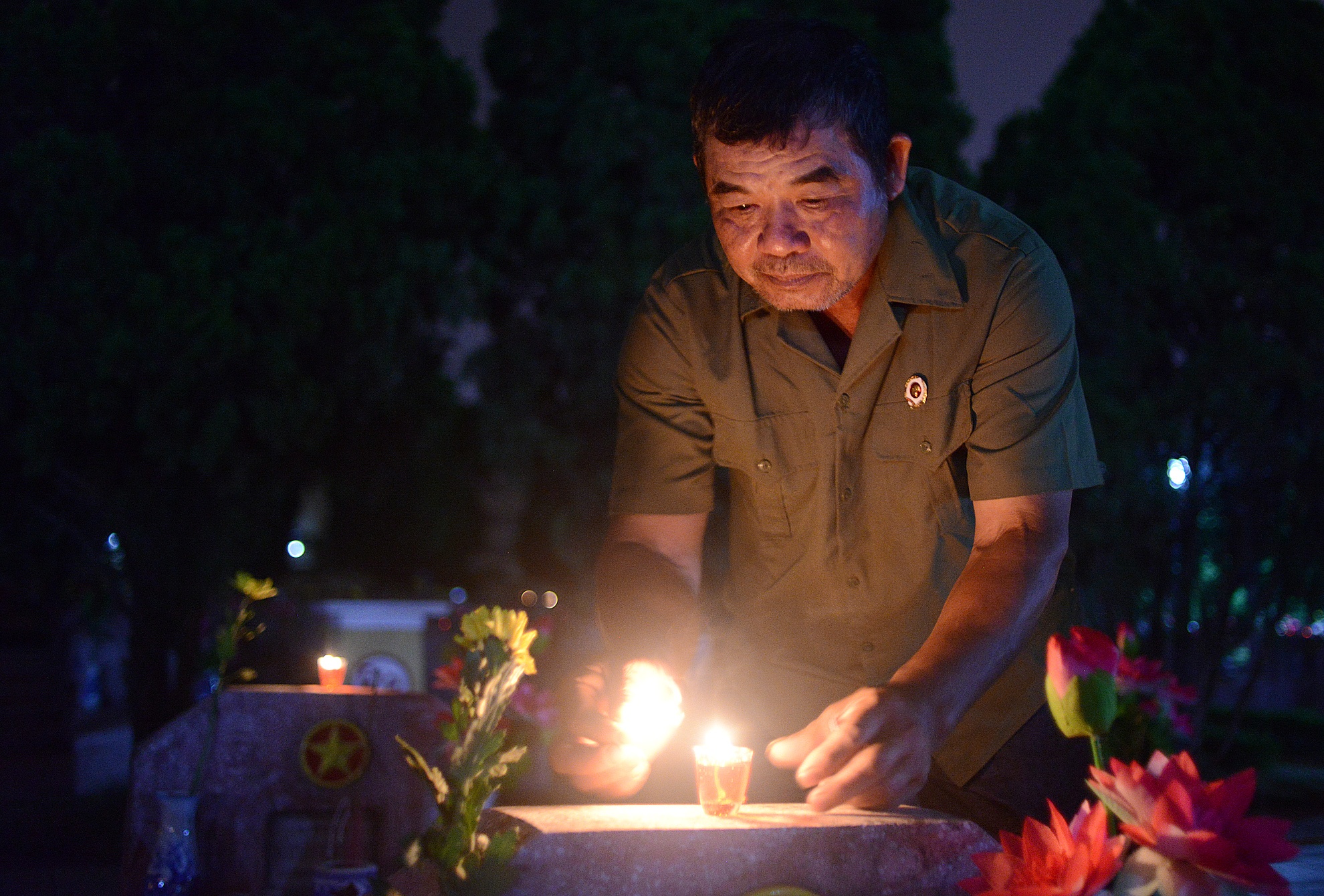 | Đêm 19/7, Nghĩa trang liệt sĩ Nhổn sáng bừng với những ngọn nến trên phần mộ từng liệt sĩ. |