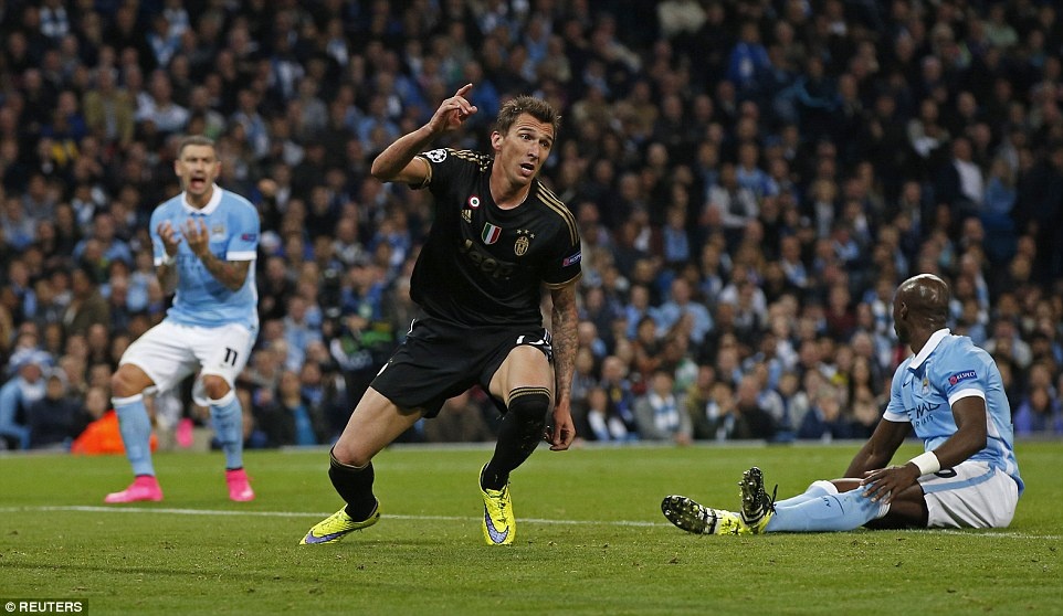 | Mario Mandzukic là người thắp lên hy vọng ngược dòng cho Juventus phút 70. Sau đường chuyền tinh tế của Pogba ở giữa sân, Mangala phá trượt bóng tạo điều kiện để Mandzukic quân bình tỷ số 1-1 cho đội khách. |