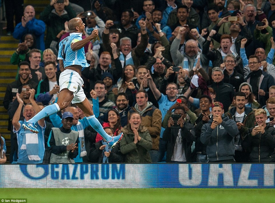 | Trung vệ thủ quân của Man City ăn mừng như thể mình vừa ghi bàn vào lưới nhà đương kim vô địch Serie A. |