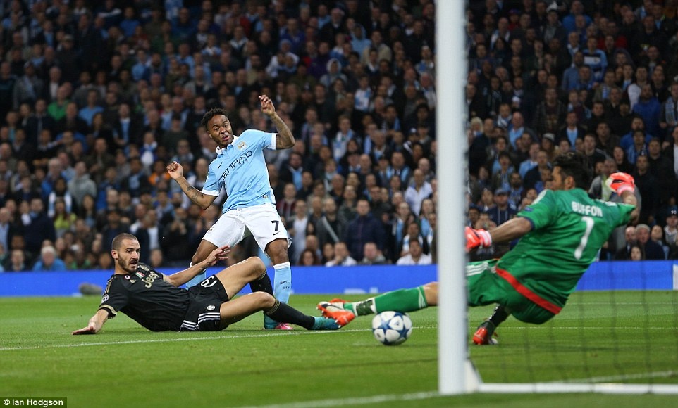 | Tân binh Raheem Sterling đứng trước cơ hội mở tỷ số ngay phút thứ 2. Tuy nhiên, pha dứt điểm của bản hợp đồng trị giá 49 triệu bảng không đánh bại được thủ thành Buffon. |