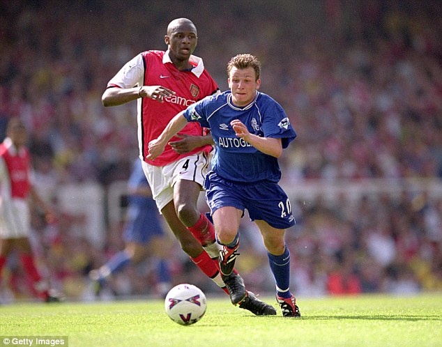 Morris và Patrick Vieira trong trận derby thành London giữa Chelsea và Arsenal năm 2000.