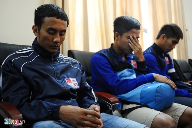 | Phạm Hữu Phát (ngoài cùng bên trái) cùng nhóm cầu thủ có liên quan đến vụ dàn xếp tỷ số tại cơ quan công an. |