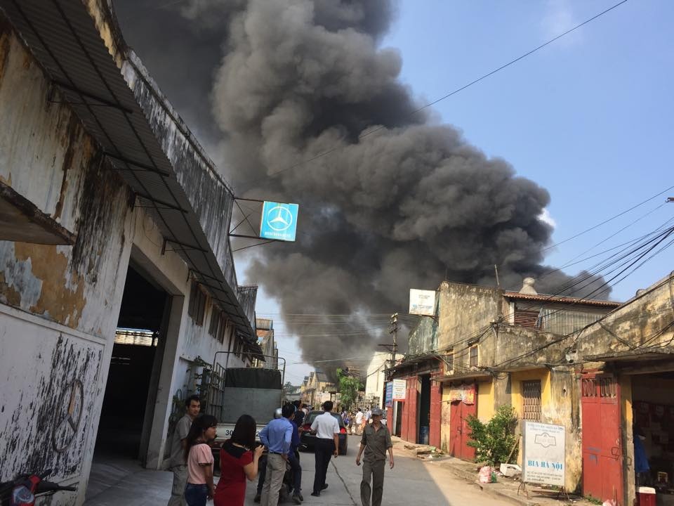 Chị Hoàng Thanh Huyền (34 tuổi), Phó giám đốc một công ty TNHH có nhà xưởng trong Công ty lâm sản Giáp Bát cho hay, thời điểm xảy ra hỏa hoạn công nhân hàn xì đang làm việc thì tia lửa bắn vào đệm mút của công ty. Ngọn lửa bùng phát ngay sau đó khiến hơn 10 công nhân tại xưởng gỗ này hoảng loạn bỏ chạy. Ngay sau đó ngọn lửa đã lan sang kho một công ty quảng cáo và một xưởng gỗ khác.