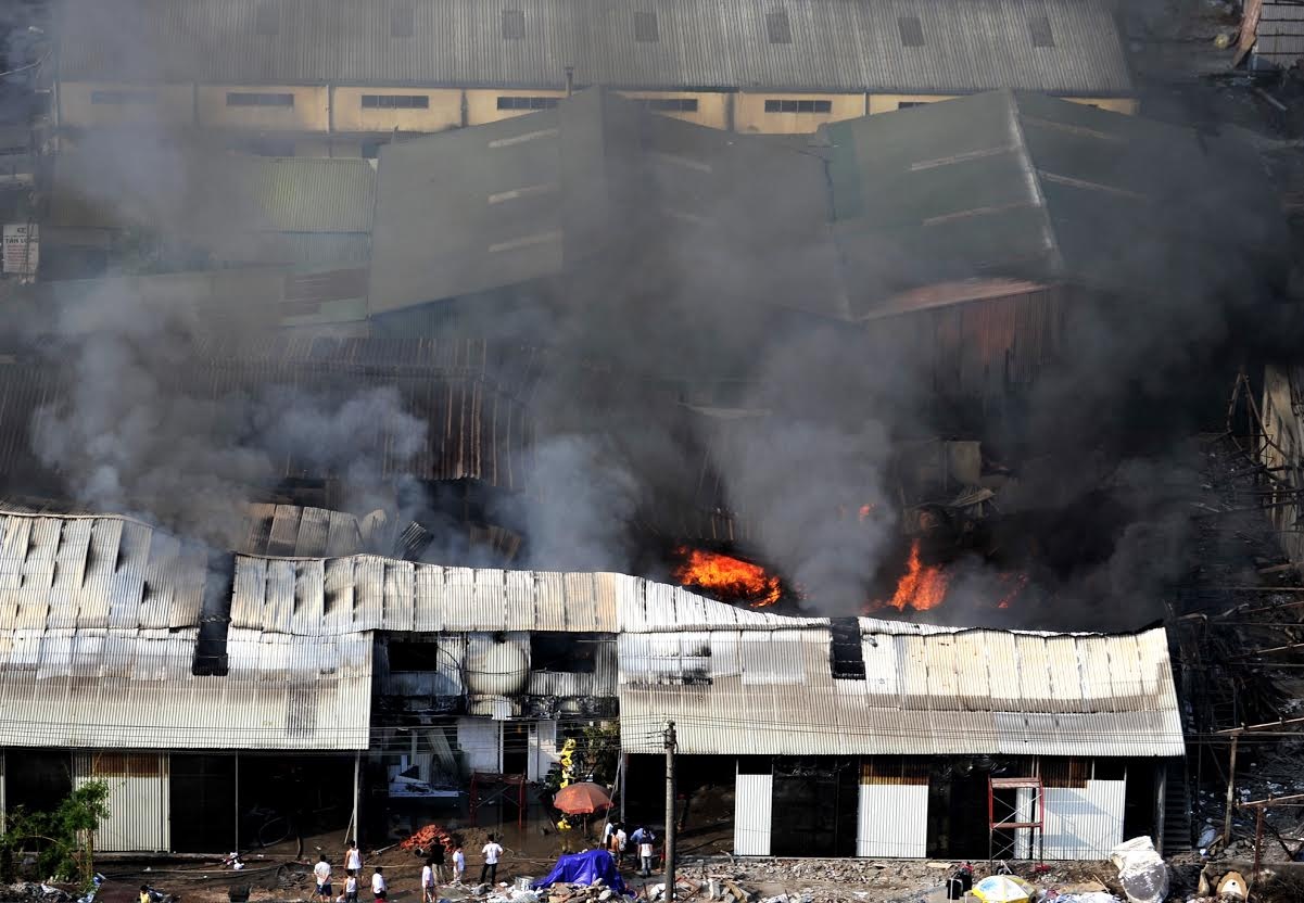| Hơn một giờ sau, một góc nhà kho đã sụp xuống trong biển lửa. |