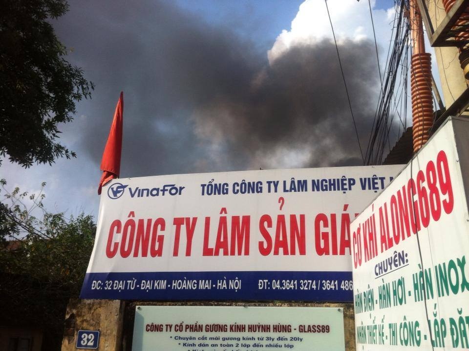 | 14h ngày 30/10, một xưởng gỗ trong khu đất của Công ty lâm sản Giáp Bát - Tổng Công ty lâm nghiệp Việt Nam (trụ sở ngõ 32 phố Đại Từ, phường Đại Kim, quận Hoàng Mai) bốc cháy dữ dội. Ảnh: otofun. |
