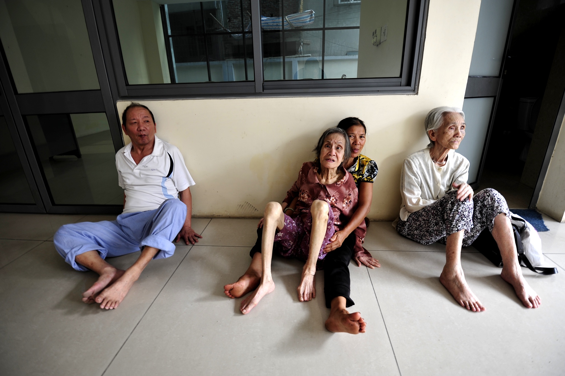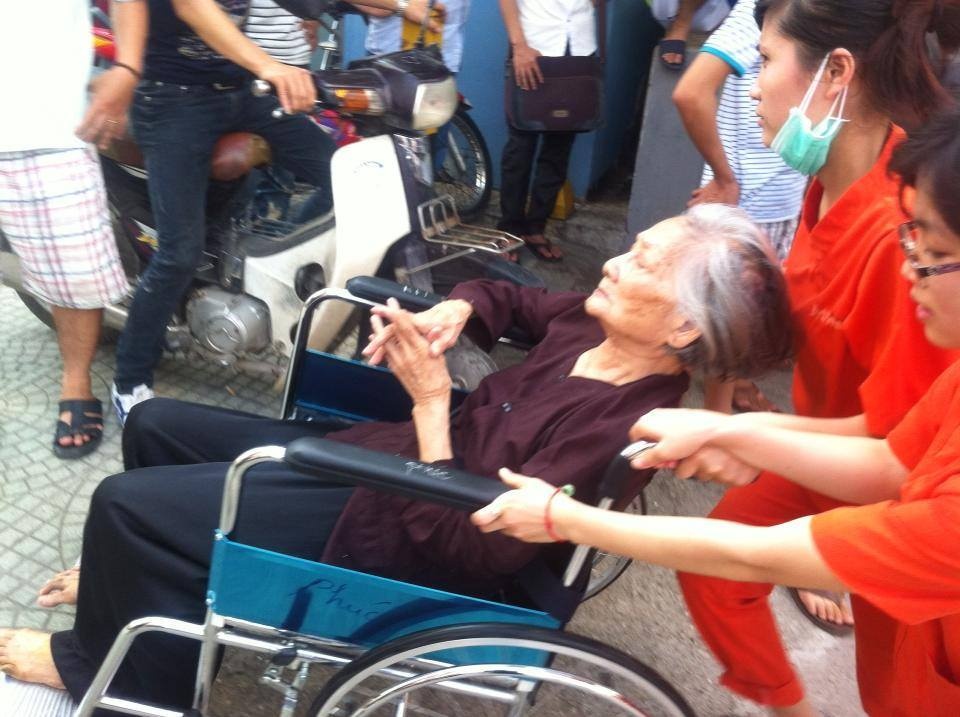 Đây là những người già đang được chăm sóc ở nhà dưỡng lão OriHome, nằm ngay cạnh công ty gỗ. Tổng cộng có khoảng 20 cụ được di chuyển ra xa đám cháy vào sảnh toà nhà Licogi 12.