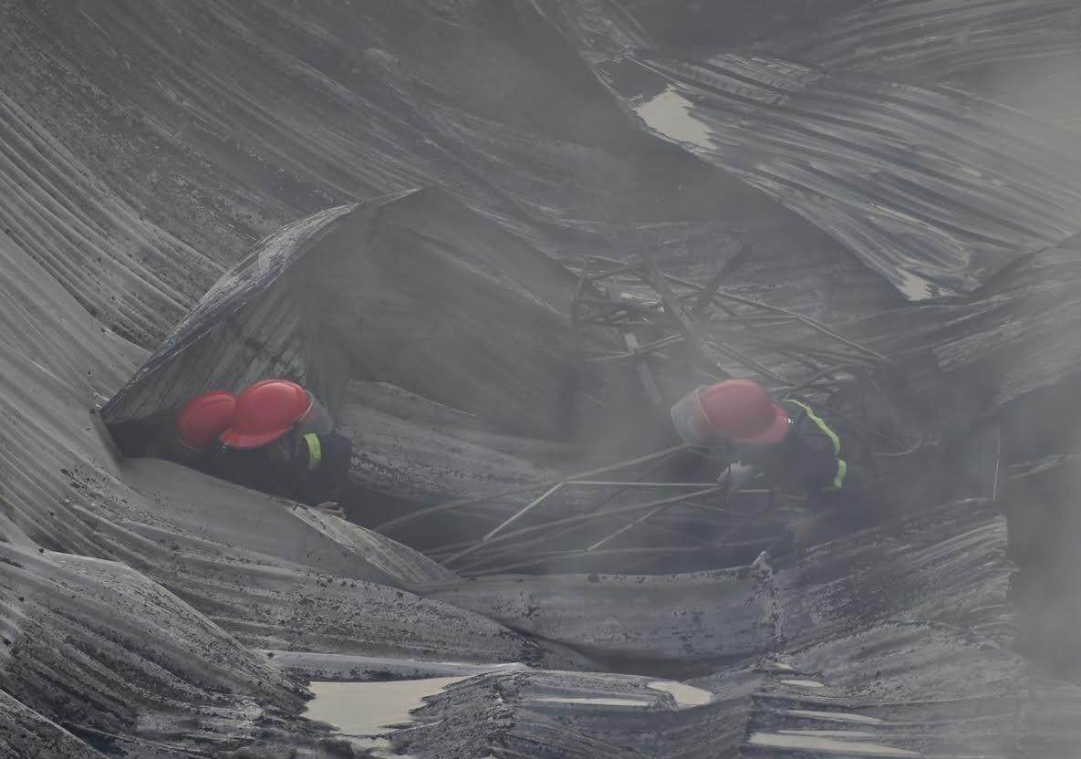 | Do 3 phía của nhà xưởng đang tiến hành sửa chữa nên công tác dập lửa gặp nhiều khó khăn. |
