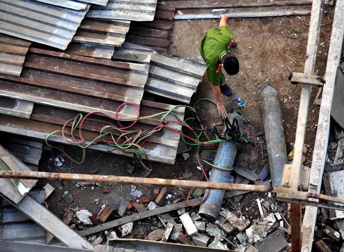 | Cảnh sát thu giữ bình oxy hàn xì, tang vật được cho là đã được sử dụng gây bắt lửa. |