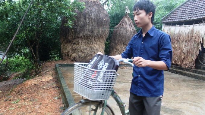 | Hằng ngày, Mạnh phải đi học bằng xe đạp từ nhà đến trường gần 8 cây số. |