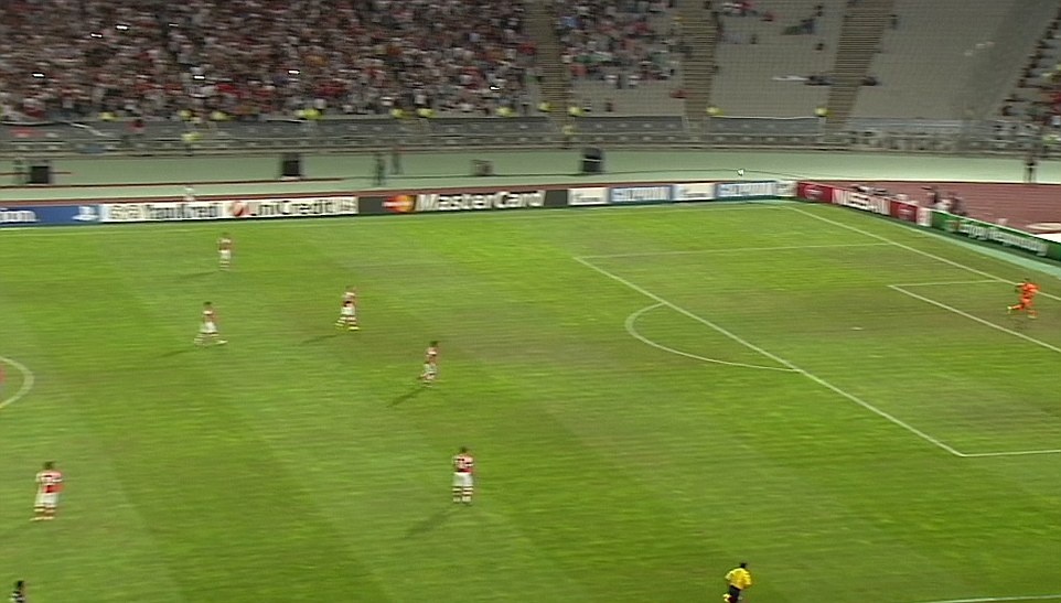 | Rất may cho thủ thành Szczesny nói riêng và đội khách nói chung khi bóng chỉ chạm xà ngang. |