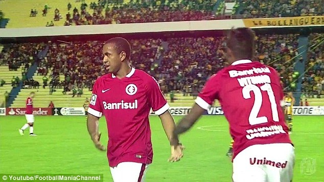 | Cũng vì không quen chơi bóng "trên không trung" nên Internacional sớm bị dẫn 2 bàn sau 15 phút thi đấu. |