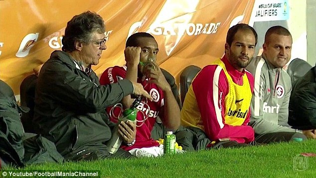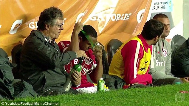 | Trước tình hình đó, một thành viên trong ban huấn luyện của Internacional đã mang bình ôxy đến để trợ giúp cựu cầu thủ M.U. |