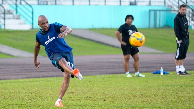 | Diouf than trời về điều kiện sân bãi tại Malaysia. Ảnh: Sabahfa. |