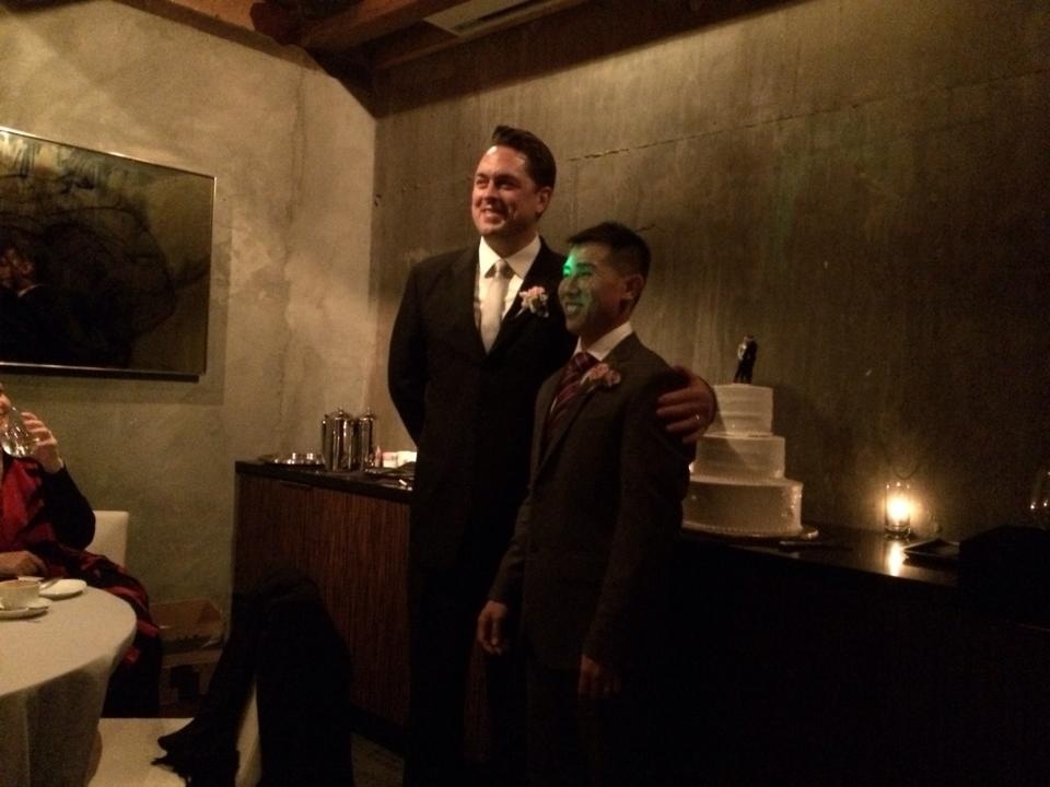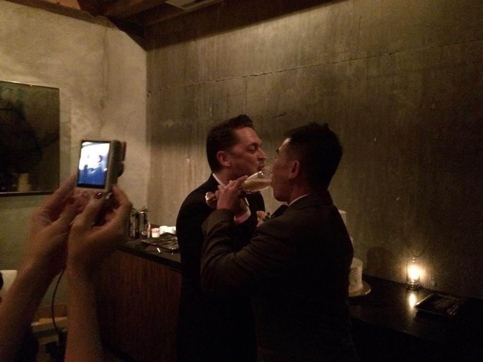 Đám cưới của nam ca sĩ và bạn trai đã diễn ra hồi tháng 12/2013 nhưng tới nay, những hình ảnh và clip từ hôn lễ mới được người hâm mộ biết tới và truyền tay nhau. |