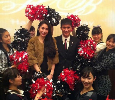 Chiếc bánh sinh nhật cùng những chiếc nến được đưa ra xen cùng bước nhảy uyển chuyển của đội aerobic, cả căn phòng vỗ tay hát vang bài chúc mừng sinh nhật. Thủy Tiên rất bất ngờ và tận hưởng niềm hạnh phúc cùng sự góp mặt của 50 người bạn Nhật Bản, đồng đội, lãnh đạo CLB cũ của chồng.