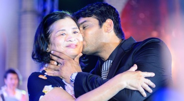 Cô Vũ Thị Thanh Mai, một khán giả trung thành của bộ phim đã không kìm được nước mắt khi được diễn viên yêu thích ôm hôn trên sân khấu.