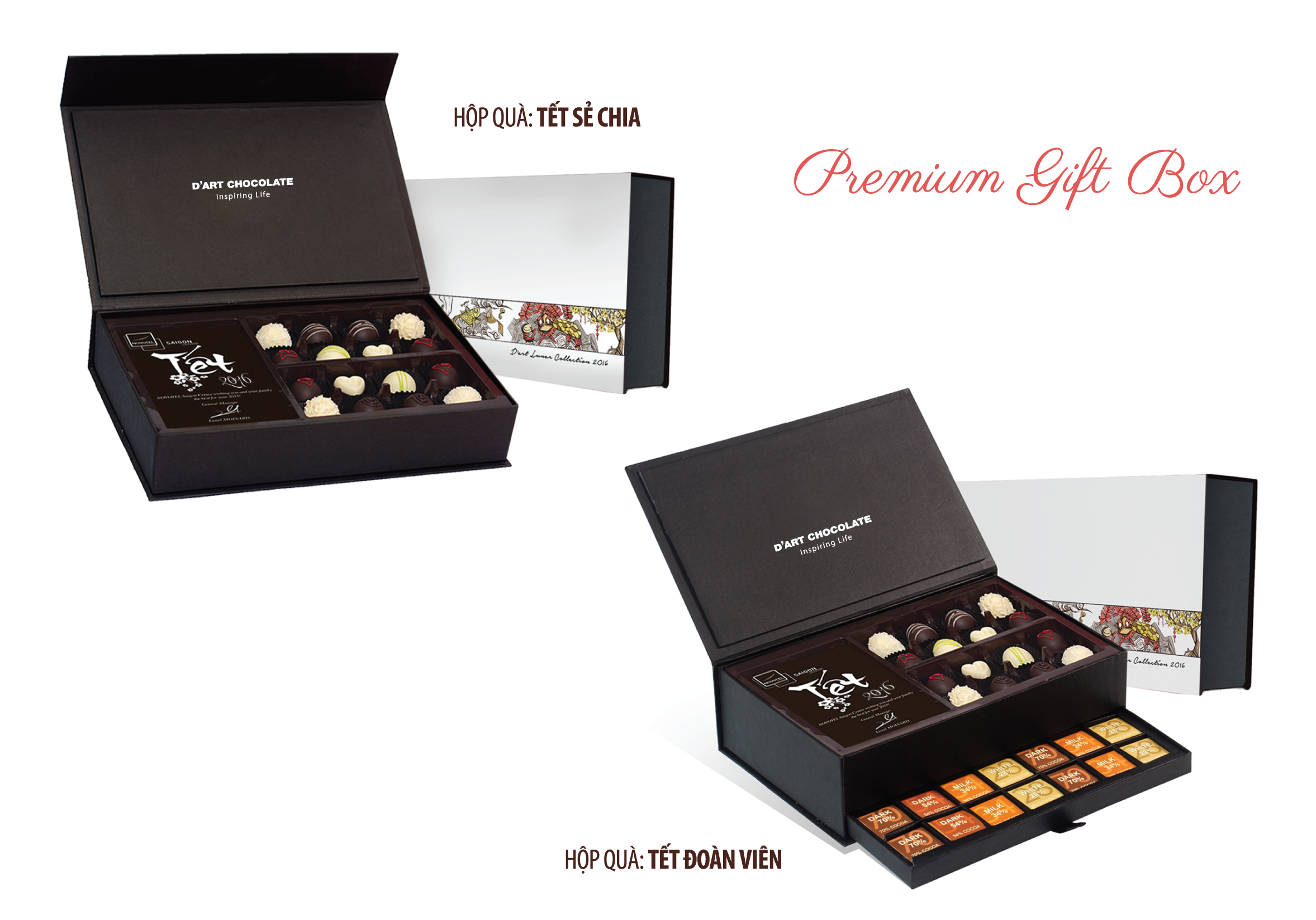 Ngoài ra, không thể không kể đến các dòng sản phẩm truyền thống của công ty D’art Chocolate, sự kết hợp ngọt ngào quyến rũ của hương vị chocolate cao cấp nổi tiếng thế giới Barry Callebaut với sự nét mộc mạc dung dị trong bức tranh Hương Quê được khéo léo lồng ghép trong mỗi hộp quà; tất cả làm nên một món quà ý nghĩa tặng nhau thay cho lời chúc yêu thương trong những ngày đầu năm mới.